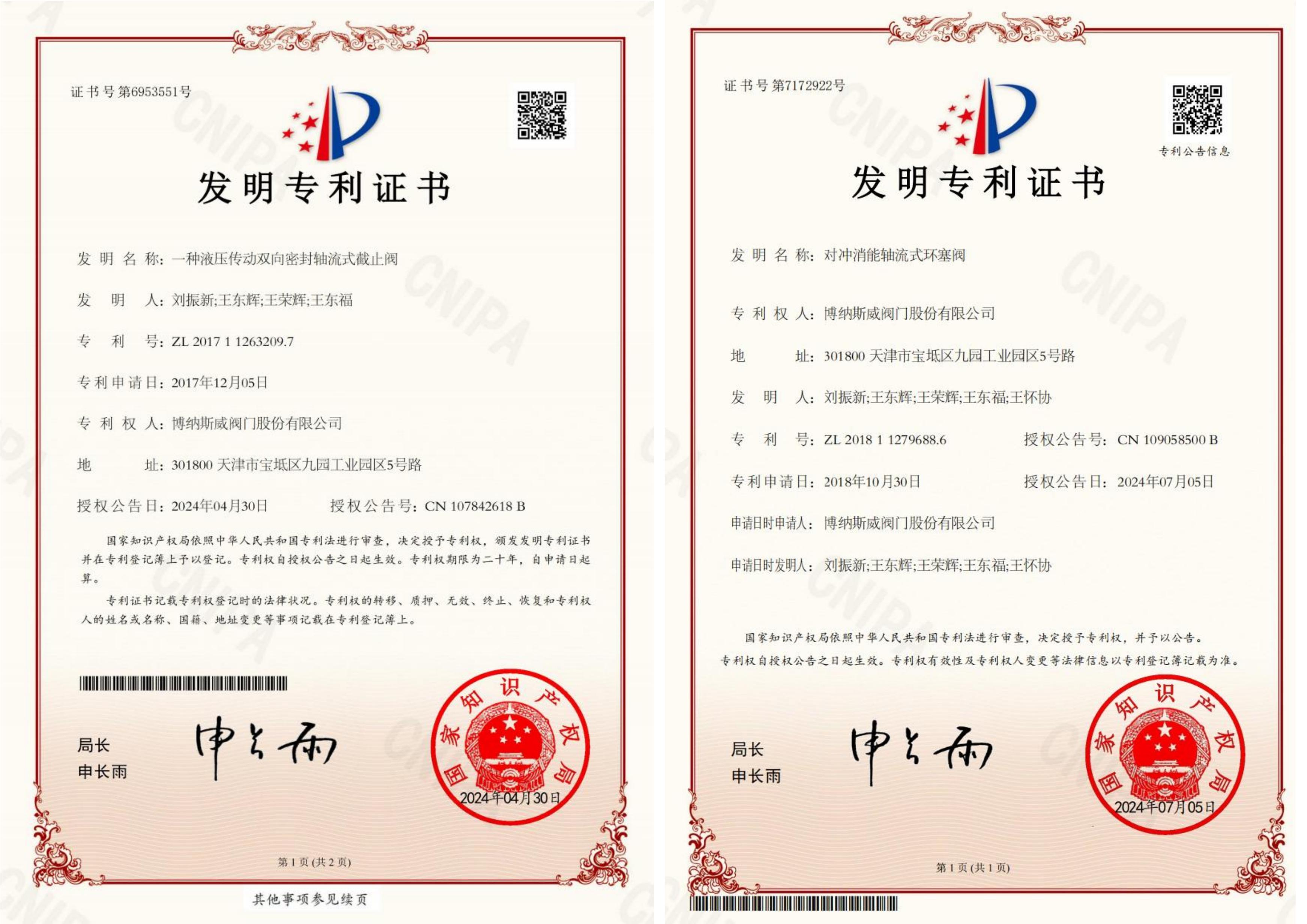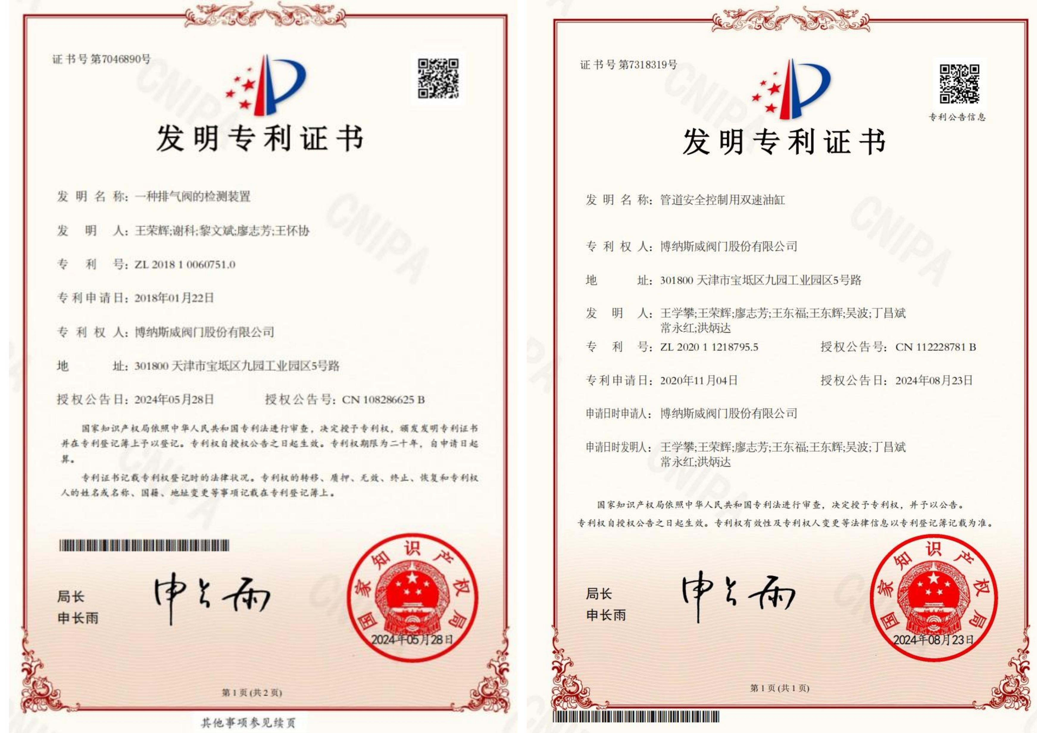 博納斯威閥門股份有限公司在創新領域進入了高速發展階段,2024年公司取得了豐碩成績,成功獲得了五項軟件著作權與六項發明專利。